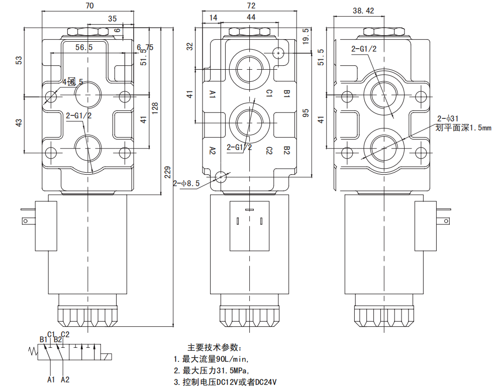 4.DVS90電磁切換閥是基礎(chǔ)的多路閥和2個(gè)液壓執(zhí)行元件之間的鏈接點(diǎn)。